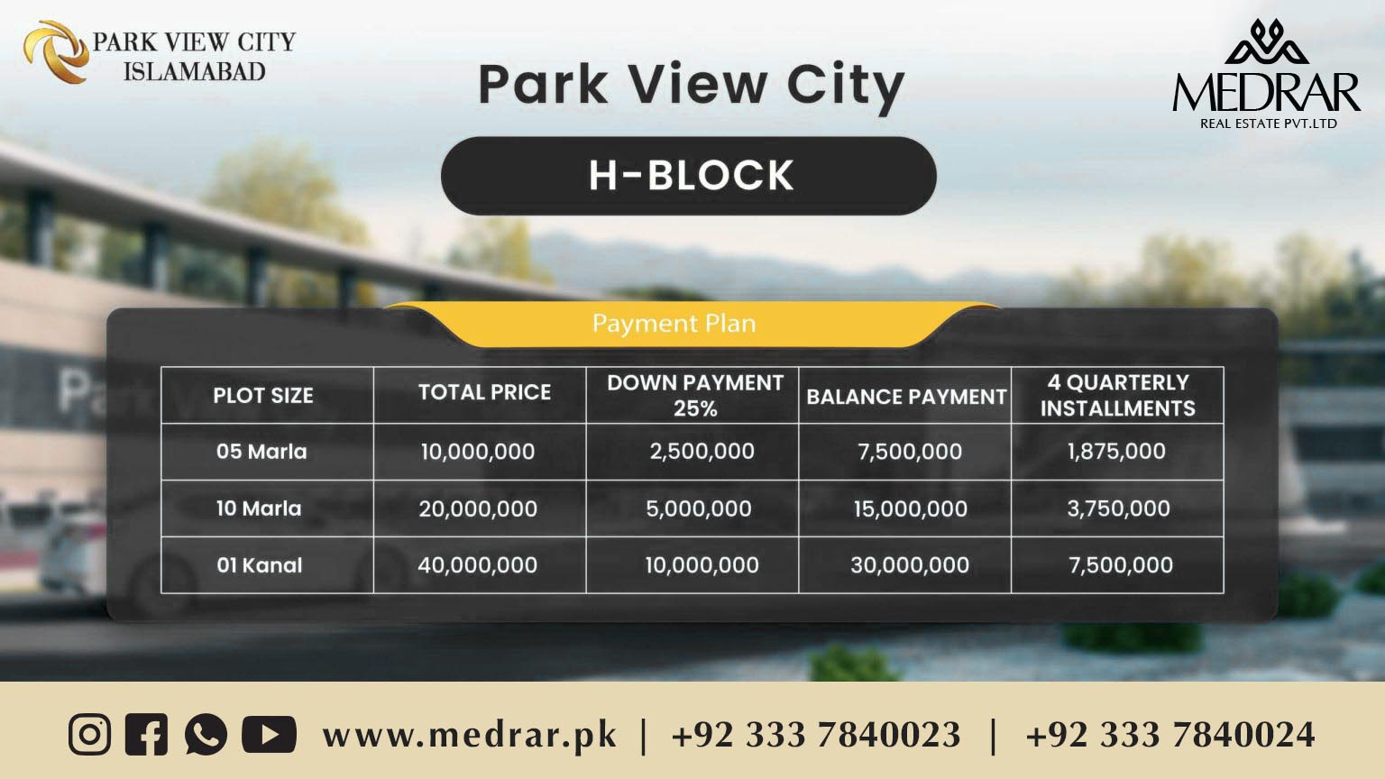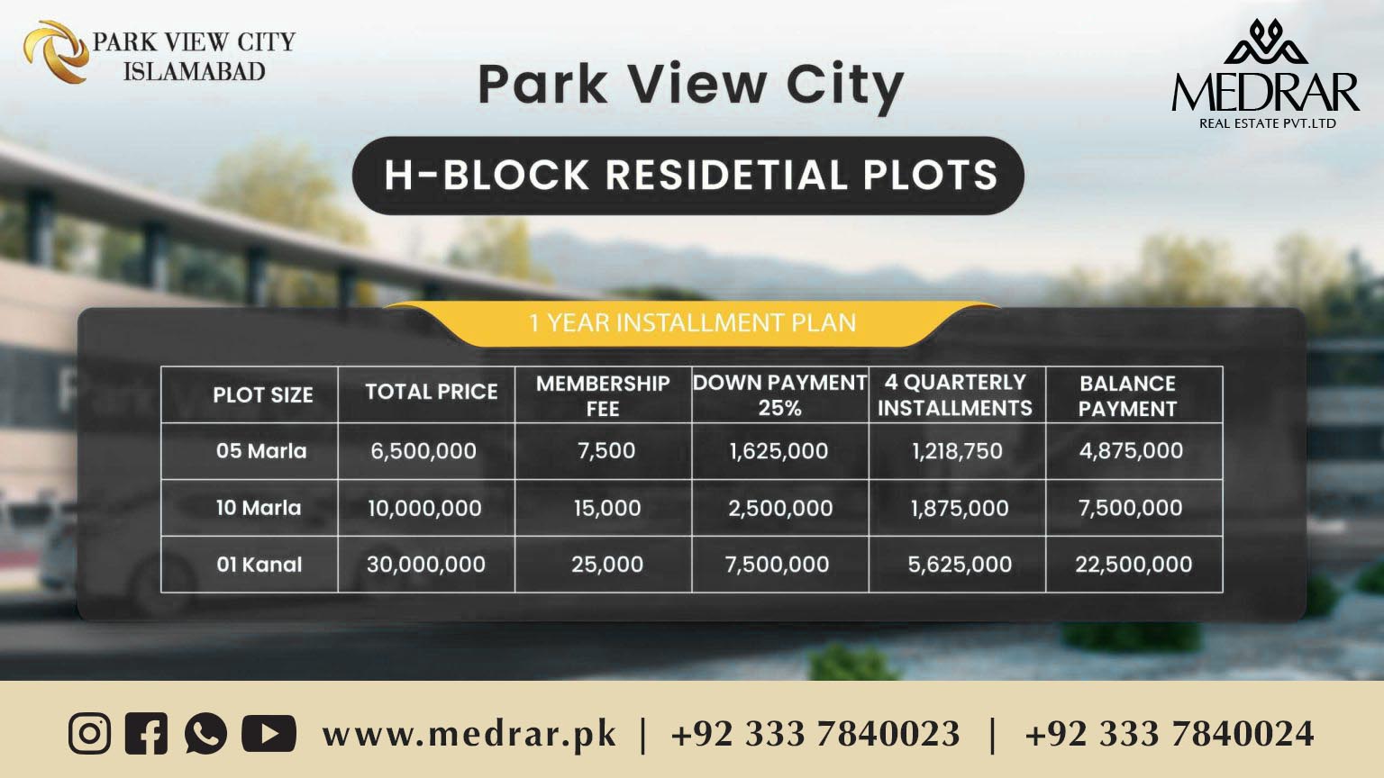 H Block has a one-year installment plan with ownership available on down payment. Park View City is offering additional plot sizes in this block.