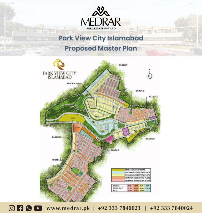 Following are the residential and commercial blocks of Park View City Islamabad: